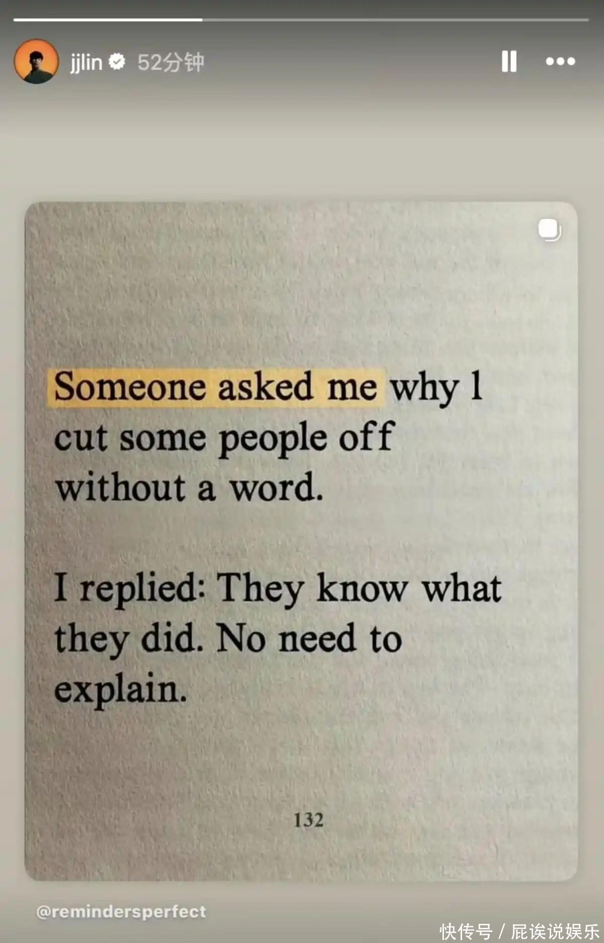 面对全网的猜测,林俊杰并未选择沉默,而是在 INS 快拍中发布了一句英文:“有人问我为何悄无声息与某些人断绝来往… 他们心知肚明,无需多言”,还在评论区补充了 “耐心” 二字。